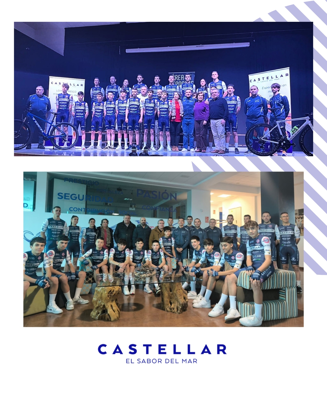 Desde la empresa Mariscos Castellar, creemos en el deporte como escuela de valores, y apoyar a estos ciclistas un año más es apostar por el futuro. Gracias a todos los que formáis parte de esta gran familia y al resto de patrocinadores principales como Newfish, Ruster y Agua Sierra Cazorla.